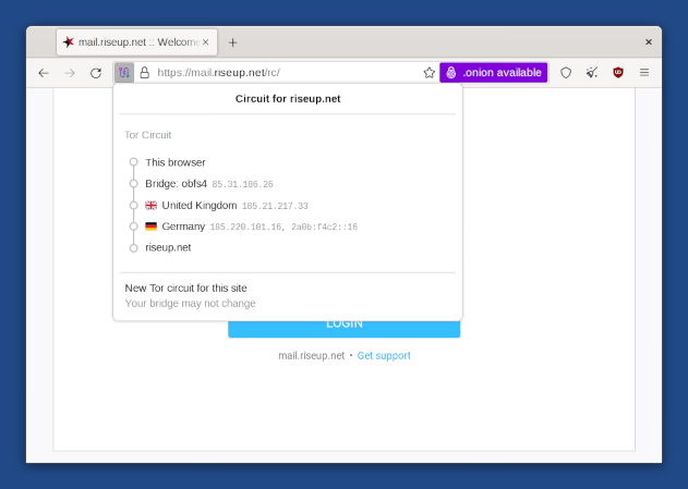 Подробнее об используемых цепочках Tor можно узнать с помощью Onion Circuits.