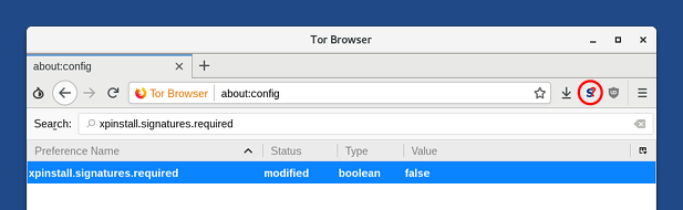 xpinstall.signatures.required.Double-click on the xpinstall.signatures.required line in the results to set its value to false.